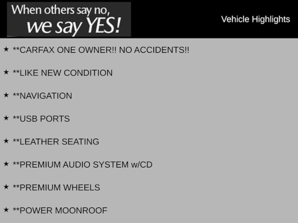Step inside to discover a world of luxury and technology. The Navigation & Infotainment System with Voice Command offers seamless connectivity, while the Leather Seating & Premium Wheels provide unmatched comfort and style. Enjoy concert-quality sound with the Premium Audio System featuring CD and Satellite Radio. The Power Moonroof and Heated Mirrors add a touch of convenience, making every journey a pleasure.